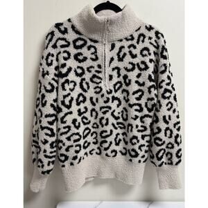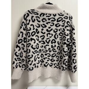 Sweet Lovely by Jein Women’s Sweater S/M Beige Black Leopard Print Half Zip