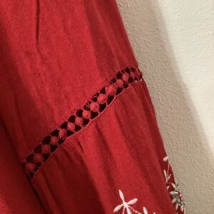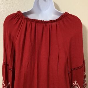 Sweet Magnolia Bohemian Boho Hippie Red Beaded Oversized Peasant Blouse Small