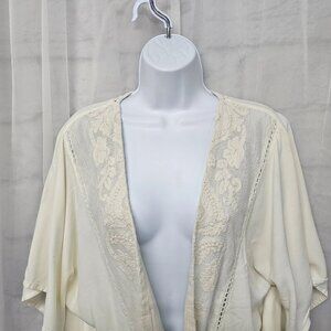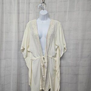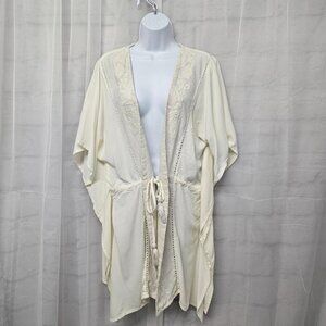 Sweet Magnolia Cream Tie Embroidered Kimono Boho Festival Lounge OSFA