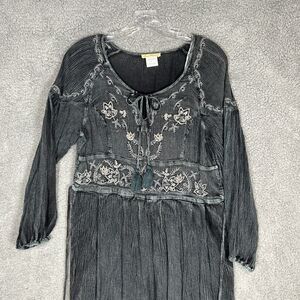 Sweet Magnolia Embellished Boho Prairie Beaded Green Black Maxi Dress L