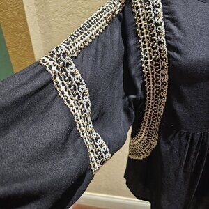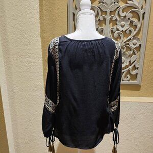 Sweet Magnolia Embroidered Boho S Black Tunic W & Tassel S