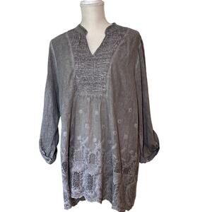 Sweet Magnolia Gray Embroidered Top Size Large