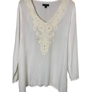 Sweet Magnolia Top Womens Size Large Casual Sleeve Boho Festival Embroidered