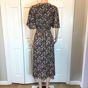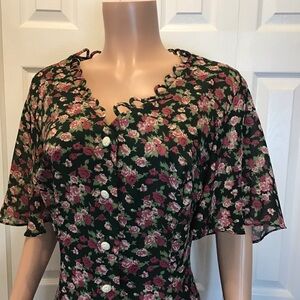 Sweet Miranda Vintage Floral Short Cape Sleeve Lace Up Midi Dress.