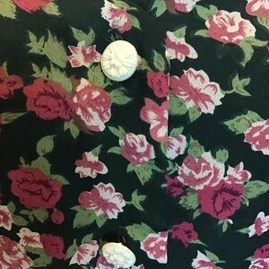 - decorative floral imprinted buttons and loop trim on v-neckline.
