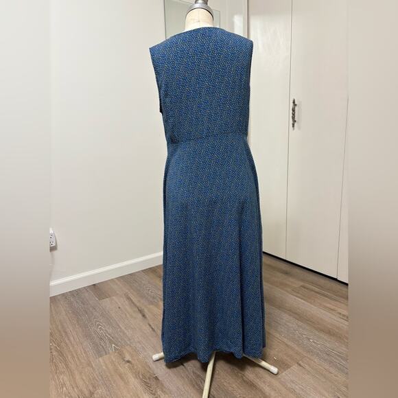 Sweet Miss Vintage Blue Polka dot Sleeveless Button Down Maxi SunDress Large