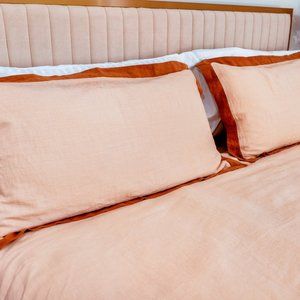 Sweet Palms-100% French Linen European Style Duvet Cover Set (Orange,Queen Size)