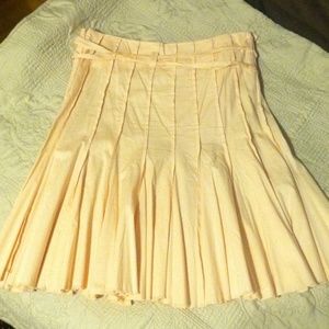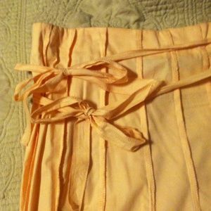 Sweet Peach Flare Midi Skirt. Stripe Motif. Side Zip Closure. 2 Ribbons Around Waist Can be Tied Any Way. 97% Cotton 3% Elastin. Made in France! ***cannot read size anymore.. But Fits like M. Will obviously fit S, will just sit lower more on hips!!! *noticed tiny stain on back (pictured), barely noticeable & should wash out 👌