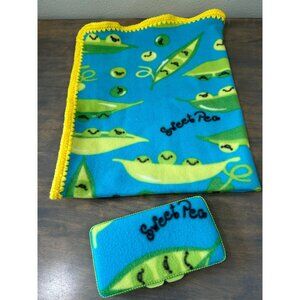 Sweet Peas Fleece Baby Blanket with Baby Wipe Holder Handmade 30" x 36" Great condition. Very Soft.