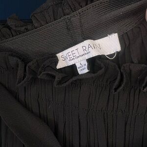 Elegant black flowy pants. Features pleated design. Perfect for any occasion.