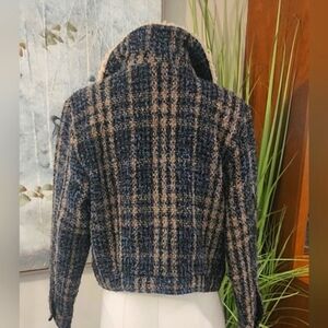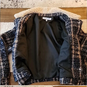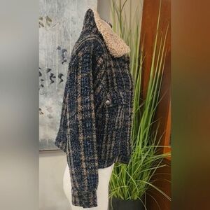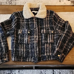 Sweet Rain Contemporary Plaid Tweed Sherpa Collared Jacket Women's Size L