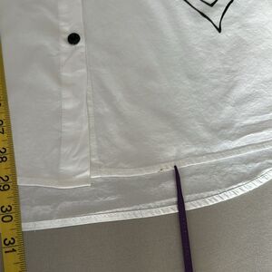Condition: Good pre-owned condition. There is a small mark near the bottom hem on the front (see last photo). It is subtle and doesn’t affect the overall wearability or look of the shirt. Priced accordingly.