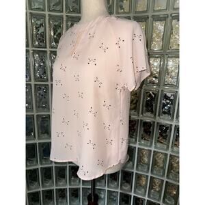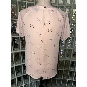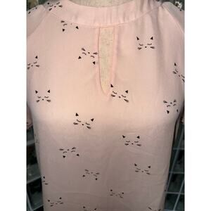 Sweet Rain Pink Cat Keyhole Short Sleeve Frill Top - size S - OD