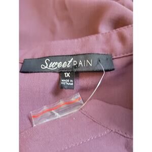 Sweet Rain Purple SS Button Up Tie Front Shirt Women's Plus 1X