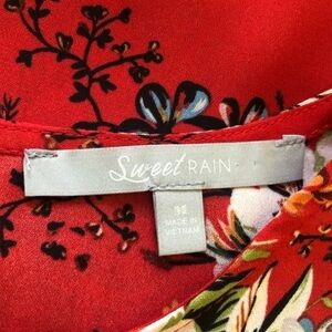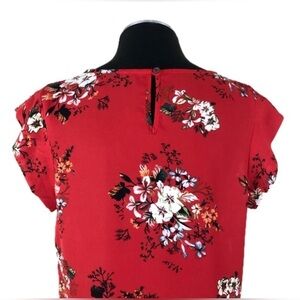 🚨Sweet Rain Red Floral Blouse with cap sleeves and pleated front. Size: Medium.