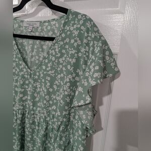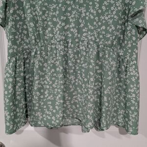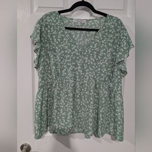 Sweet Rain Sage Green Floral V-Neck Flutter Sleeve Blouse in Size 2X