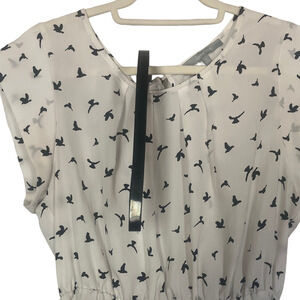 Sweet Rain White Dress with Black Dove Pattern and Black Belt