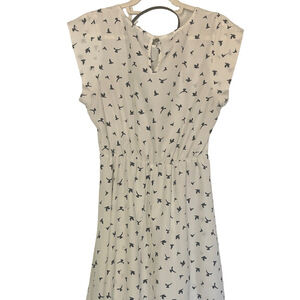 Flowy and airy dress with a black bird (dove) pattern. Soft and stylish, ideal for casual outings.