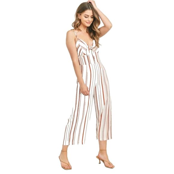 Sweet Rain Wide Leg Cropped Jumpsuit Women Size Small V Neck Sleeveless Stripe