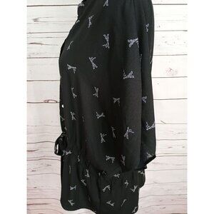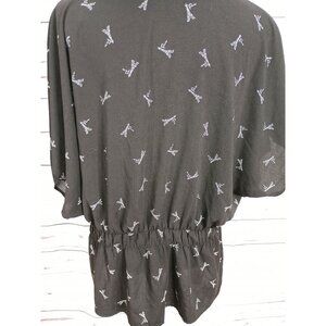 Sweet Rain Womens Black Eiffel Tower Paris Print Peplum Tie Front 3X