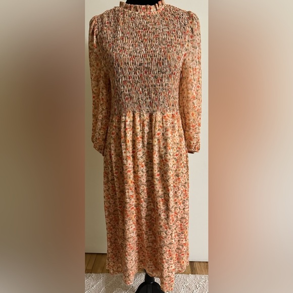 Sweet Rain Women's Floral Smocked Puff Long Sleeve Midi Dress - Size L