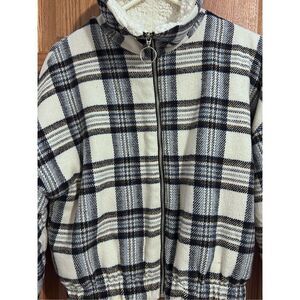 Sweet Rain Plaid Sherpa Lined Full Zip Jacket Shacket Size M