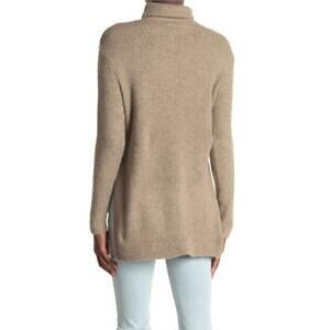 Sweet Romeo Abstract Rib Hi-Low Turtleneck Tunic Sweater Heather Latte Large $58