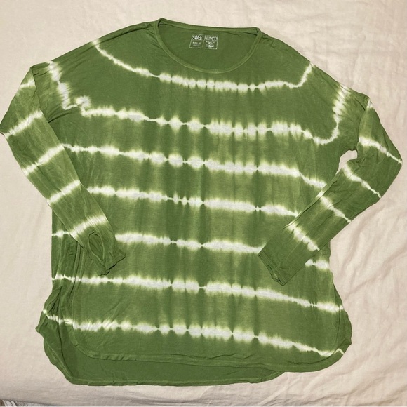 Sweet Romeo Green & White Long Sleeve Tie Dye Tee with Thumb Holes