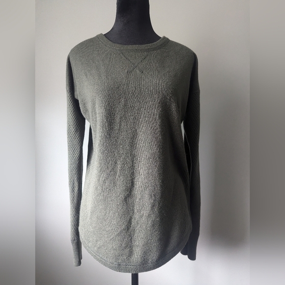 Sweet Romeo Olive Green Woven Long Sleeve Crew Neck Blouse