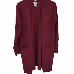 Layer up for the seasons changing with this open front cardigan for an chic ensemble. - Open front - Long sleeves - 2 front patch pockets - Ribbed trim - Approx. 32" length (size S)
