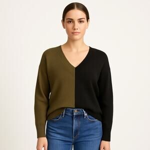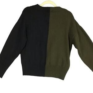 Sweet Romeo Women’s Colorblock V-Neck Pullover Sweater Black Green Size Small