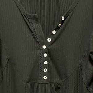 Sweet Romeo Women's Size M Henley Neck Long Sleeve Ribbed Uneven Top Tunic Black
