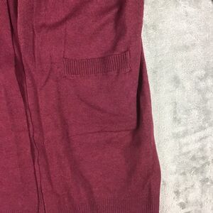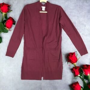 Sweet Romeo Women’s XS Open Front Long Cardigan Maroon Pocketed Lightweight NWOT