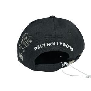 Deep, black sturdy cotton cap with adjustable fit, embroidered throughout and studded detailing