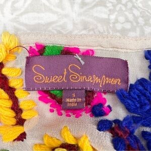 Sweet Sinammon Multicolor Floral Paisley Yarn Embroidered Blouse Top Small