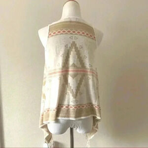 Sweet & Sinful cream and tan Aztec sleeveless shawl with fringe