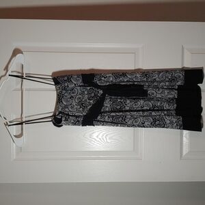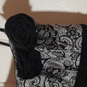 Sweet Storm BlackWhite Print Spaghetti Strap Dress Stretchy Rosette Detail SizeM