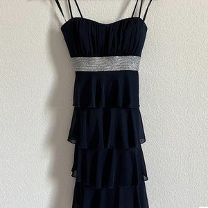 🥂 navy spaghetti strap layered ruffle blue dress 🥂