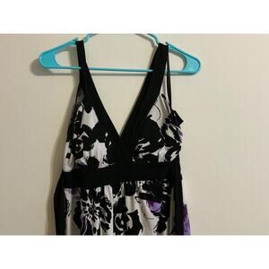 The Sweet Storm XL black and purple floral print dress is a stylish option for a casual occasion. This knee-length, sleeveless dress features an empire waist and a fit & flare style, making it flattering and comfortable. The floral pattern adds a playful touch, perfect for spring and summer. Made in Indonesia, this dress is designed for regular sizing and is ideal for women who appreciate a blend of sweet and stormy hues in their wardrobe.