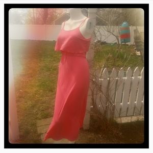 Rose Coral summer dress by LAGACI. Size medium. Adjustable straps. Drape front and ankle length skirt. Maybe worn once last summer. No rips, stains or imperfections.