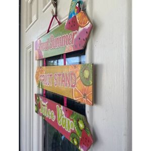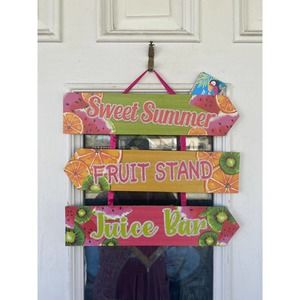 Sweet Summer Fruit Stand Juice Bar Watermelon Oranges Kiwis Hanging Sign Decor
