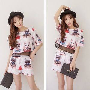 🆕 💕 Sweet Two Piece Chiffon Top & Shorts