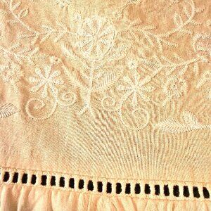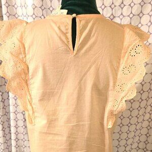 Sweet Wanderer Adorable eyelet trimmed embroidered apricot top M