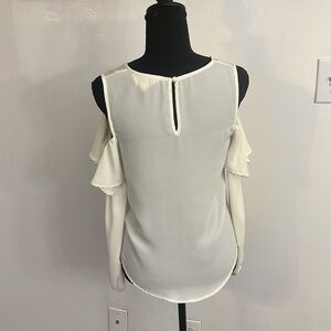 Sweet Wanderer Elegant Cold Shoulder Lightweight Semi-Sheer Blouse, Sz. S. Good quality and condition. Beautiful elegant work on the arms. No holes, stains or damage. Great for date night with heels, Workwear or a day of shopping with the girls or the family! An excellent addition to any closet!