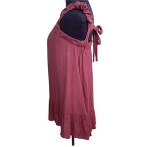 Get ready to wander in style with the Sweet Wanderer Pink Sleeveless Tie in the Back Blouse. This lightweight and airy blouse comes with a built-in slip for added comfort and convenience. The delicate pink color and tie-back detail add a touch of femininity, making it perfect for any occasion. EUC