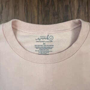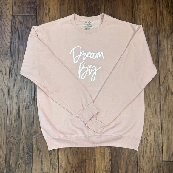 Light pink sweatshirt from Sweet Wink with inspirational "Dream Big" writing. Light stain (see photo), some light wash wear, no holes or tears. Size M.