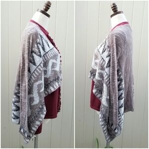 Sweet and Sinful NY Women's Brown Aztec Open Drape Knit Cardigan, Medium
