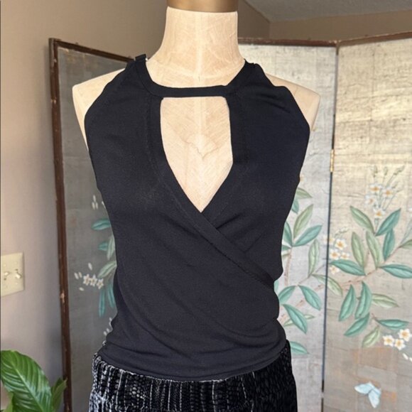 Sweet by Miss Me Black High Neck Racer Back Key Hole Crossover Tank Top Size S