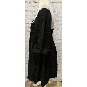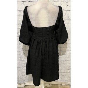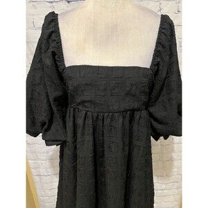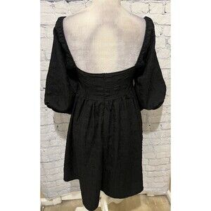 The Sweet Lemon puff sleeve mini black dress is a stylish and versatile piece perfect for various occasions. Featuring a geometric pattern, short puff sleeves, and a square neckline, this dress is both fashionable and chic. Made from a blend of polyester and rayon, it offers comfort and style. The zipper back detail adds a modern touch to the overall design, making it a must-have for any woman's wardrobe. This mini dress in size small is a great addition to any collection, suitable for travel, parties, casual outings, formal events, workwear, or business meetings. 16 inches pit to pit, 30 inch waist and 28 inches long. Smoke free home.