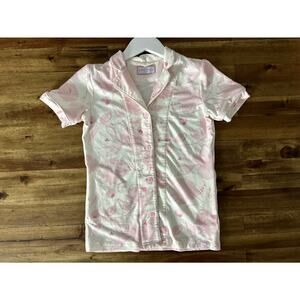SweetHoney Cozy Pajama Set Classic Pink Floral Short Sleeve Pants Button Down 10